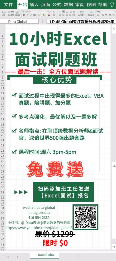 周六下午|Excel 面试刷题班 ,高强度实战教学,掌握 Excel 函数、数据透视表、面试高频题型、复杂数据处理与图表制作等技能,轻松应对面试,拿下心仪 offer!